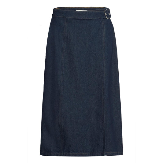 Lækker kraftig jeans slå-om nederdel. Den har fast linning, der kan justeres. Den er lille...