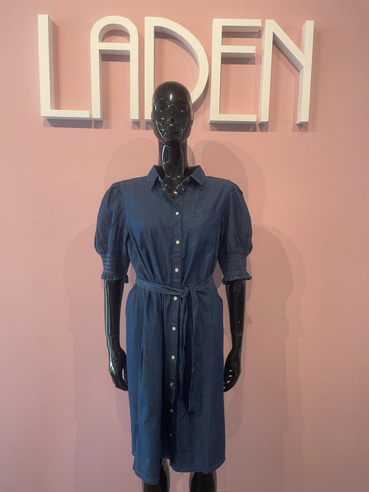 Lækker blød jeanskjole med kort ærme. Ærmet har en bred elastikkant som afslutning, så ærmet...