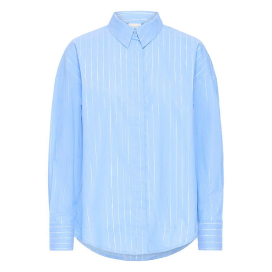 Lækker tynd og lidt oversize gennemknappet skjorte, der er ensfarvet med en smal sølvstribe i...