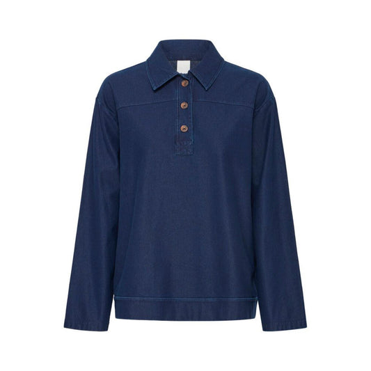 Kort og bred og super blød denimbluse med krave ved halsen samt 3 knapper ned...