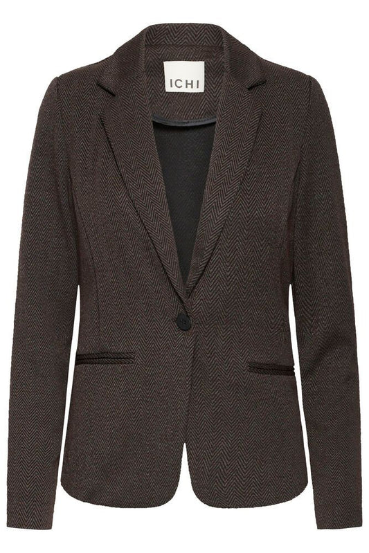 ICHI Kate Jacquard Blazer Kort Brun Sort