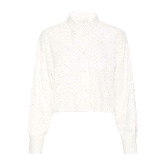 Kort enkel bluse i offwhite med "diamanter" i metervaren. Blusen er gennemknappet med krave ved...