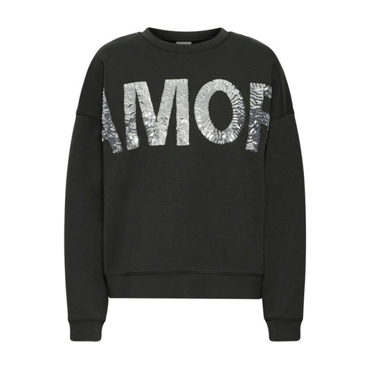 Lækker blød oversize sweatshirt i sort med stort pailett tryk foran. Den er kort og...