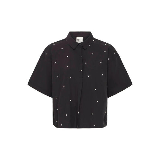 Sød kort og lidt bred sort bomuldsbluse med kort ærme samt med krave ved halsen....