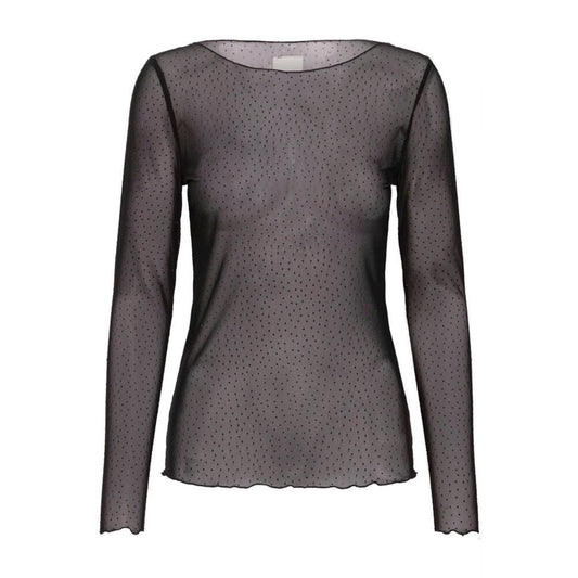 Lækker smal gennemsigtig mesh t-shirt med bred rund hals samt smalle lange ærmer. Den har...