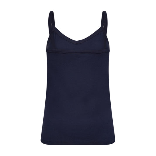 Lækker blød og tætsiddende top med v-hals samt smalle stropper. Den sidder til og er...