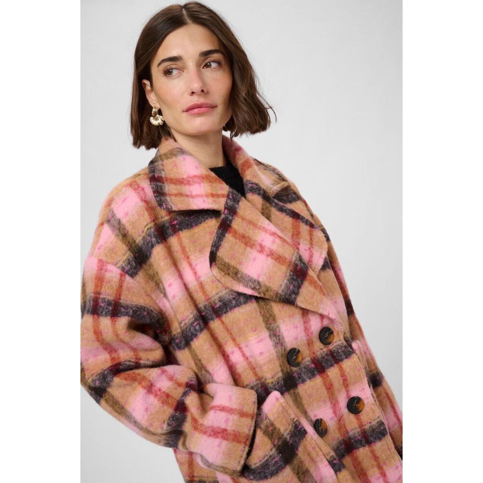 Culture Shila Coat Brown Red Check