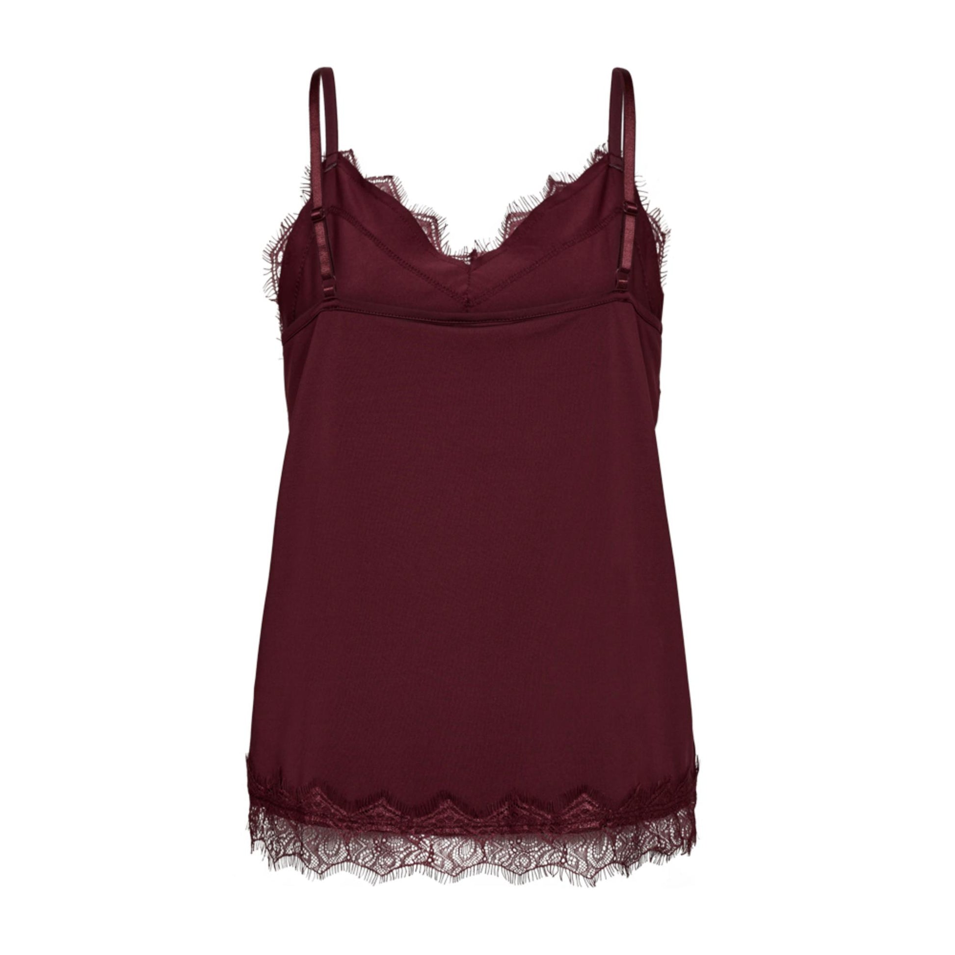 Tynd top med flæser samt regulerbare stropper. Toppen er god under bluser. Den er smal i snittet, dog sidder den ikke for stramt. Toppen er svær at måle, da den er elastisk.