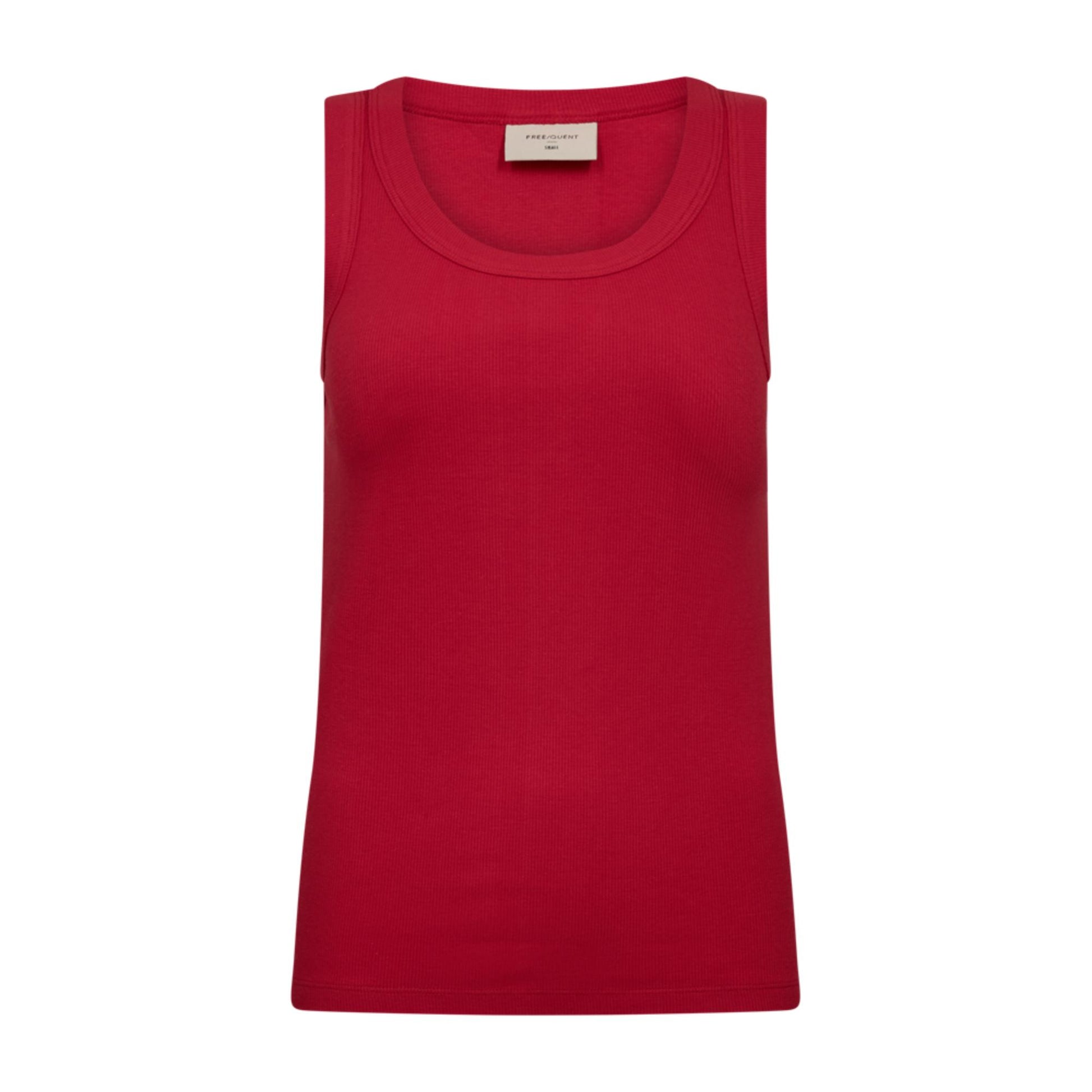 Smal ribtop med brede skulderstropper. Den har rund hals. Toppen sidder til og er stram, men den er samtidig blød i kvaliteten. Toppen findes i flere farver.