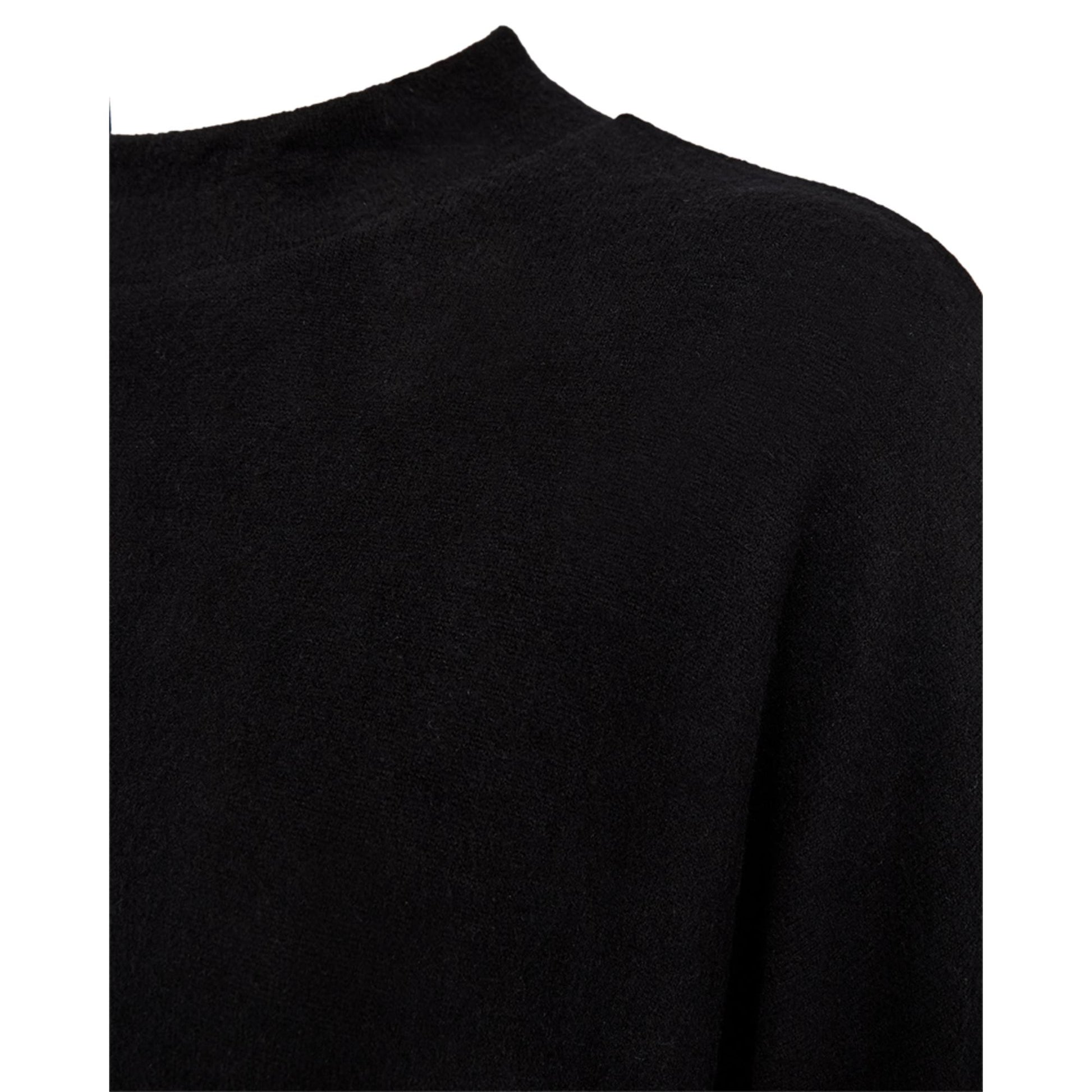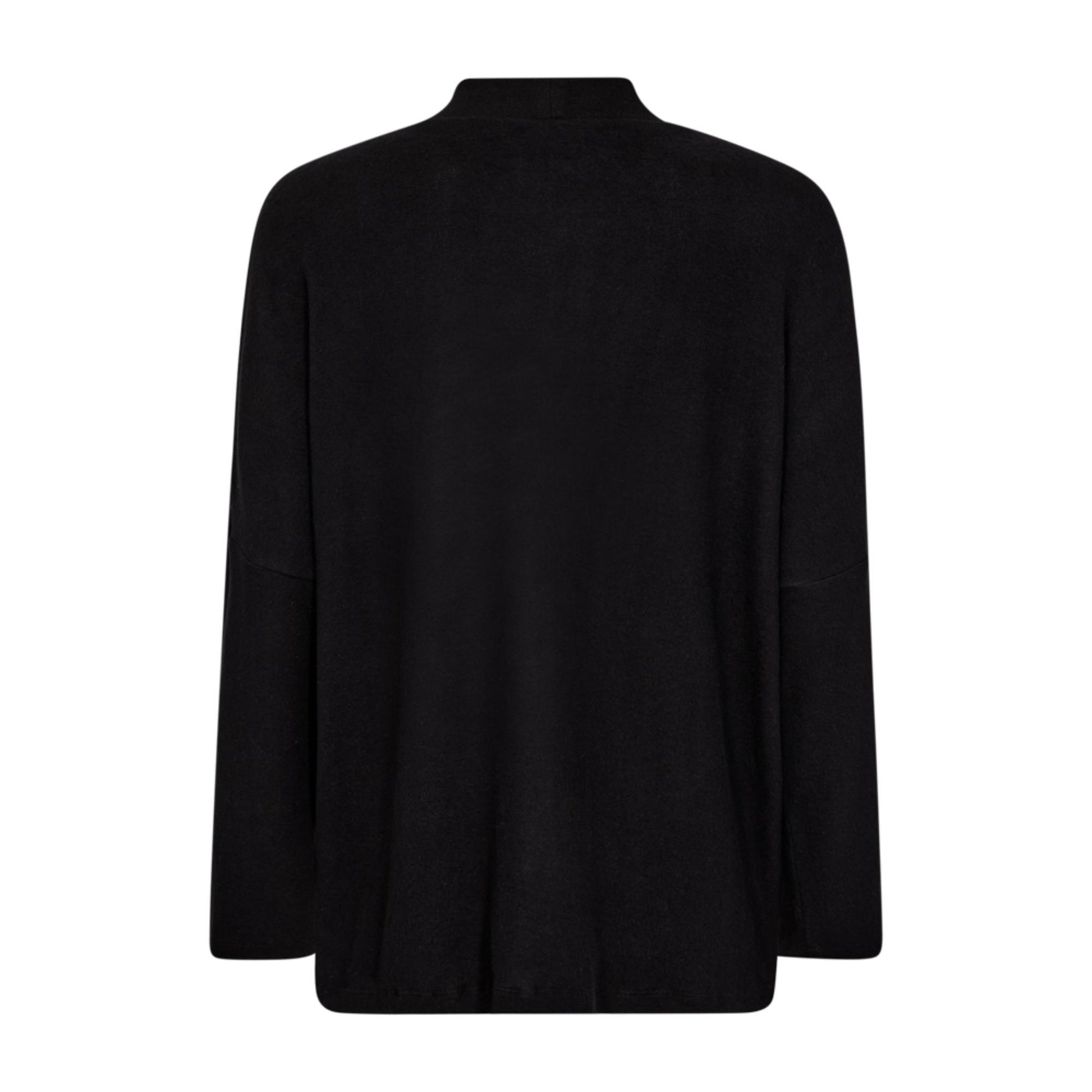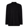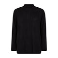 Lækker super blød og vamset bluse med lange ærmer samt med høj hlas. Blusen er bredere foroven og går ind forneden. Den har lidt længde og går under numsen. Den kan dog rykkes op, når den er smal forneden. Metervaren er super blød og jerseyagtig. Det vil sige, at de bliver større ved brug.