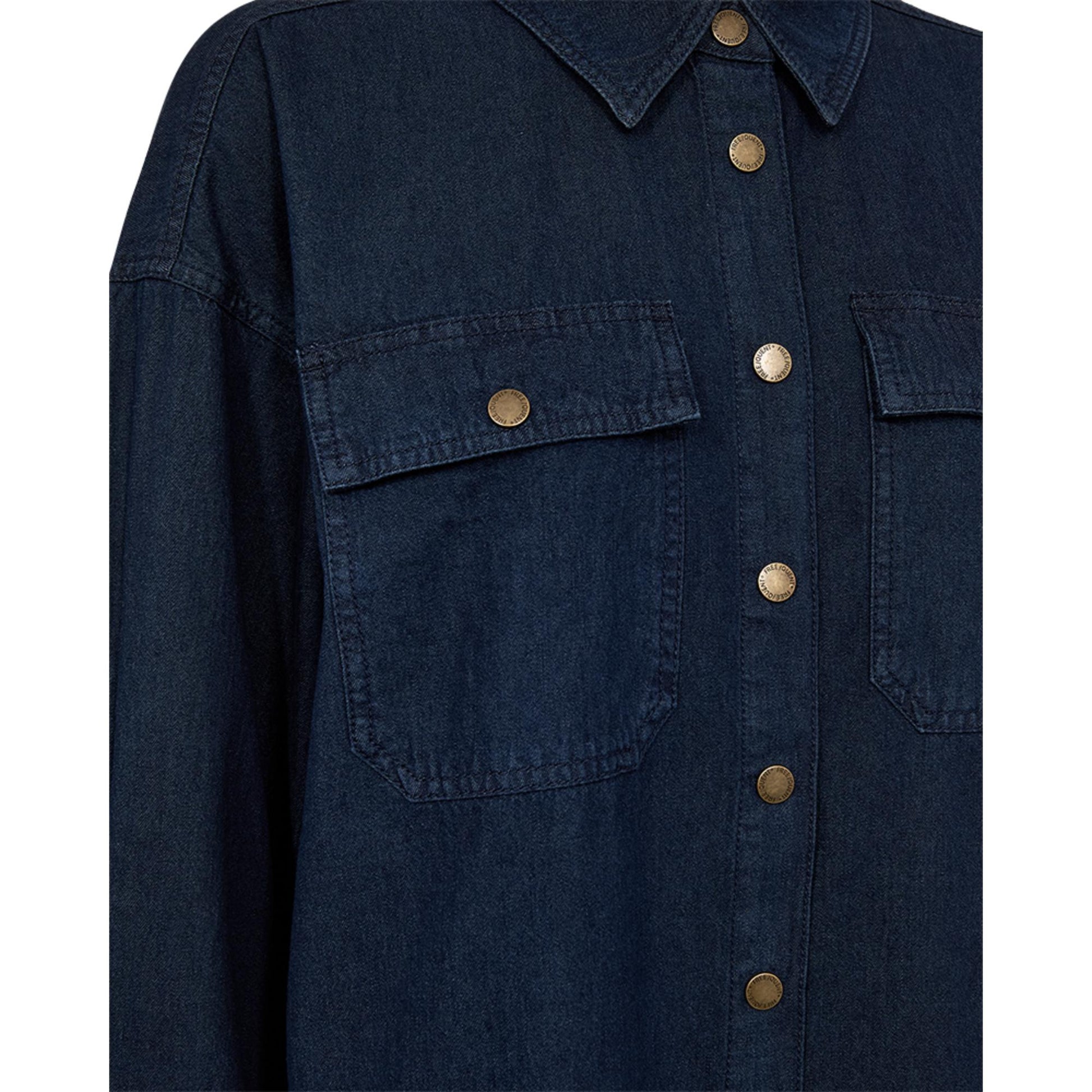 Lækker tynd og lidt oversize jeans skjorte, der har trykknapper ned foran samt to store brystlommer. Den har god plads, og kan derfor ligeledes bruges som en cardigan.