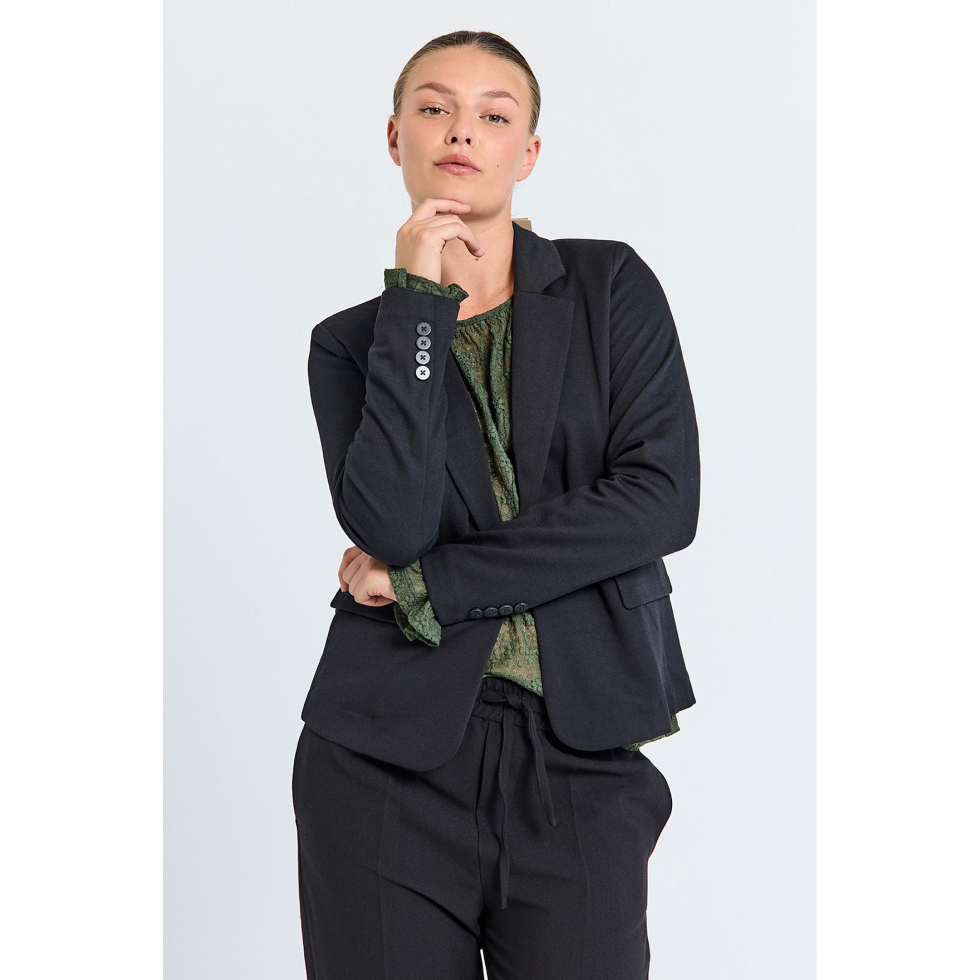 Lækker kort jersey blazer med et lige snit. Den er hverken for smal eller for løs. Den har et enkel snit og den har ligeledes en knap foran. Blazeren har ikke foer og kan derfor vaskes i maskinen. Blazeren er en del af Freequents basisprogram, og findes i flere farver. Vi anbefaler at tage den størrelse, man plejer at bruge.