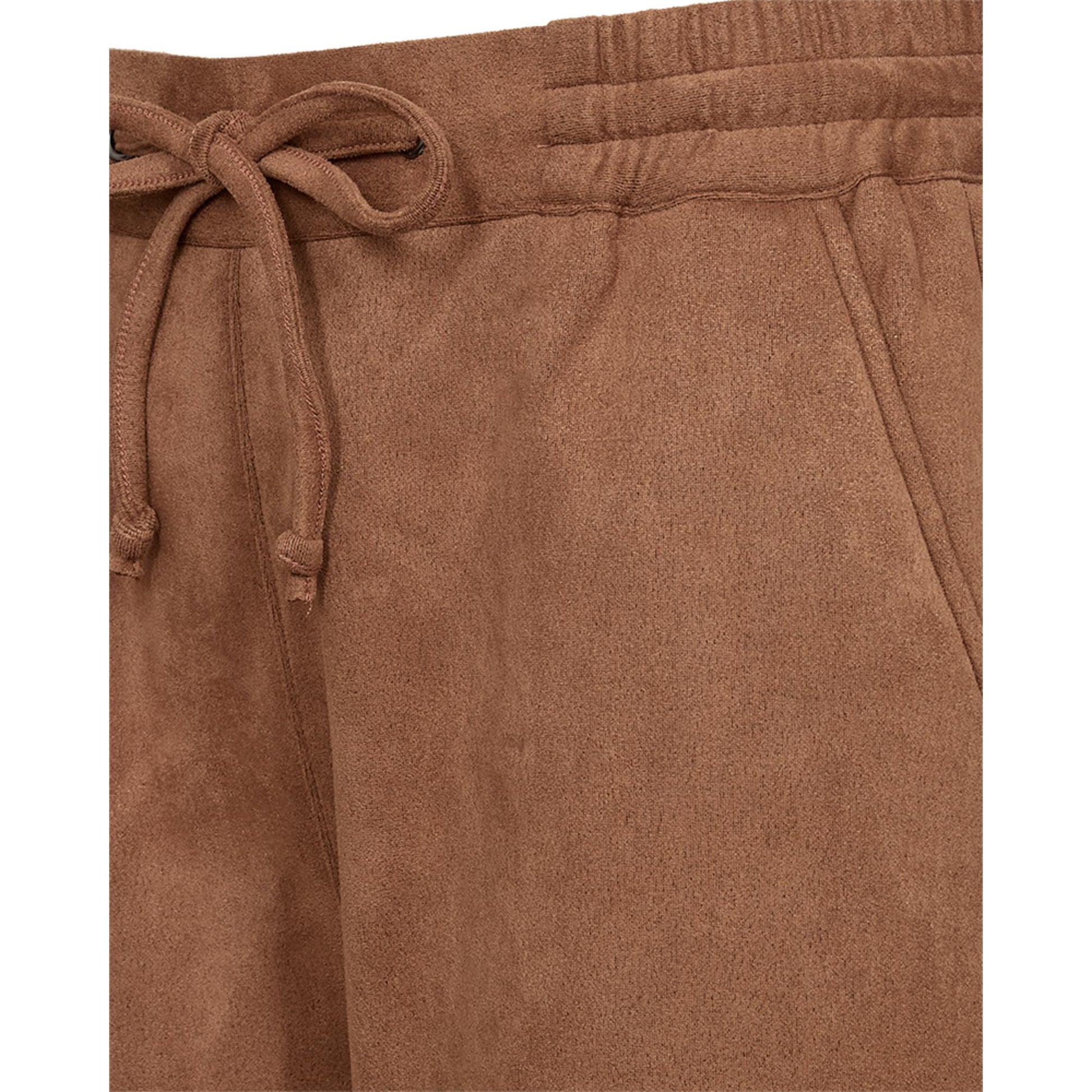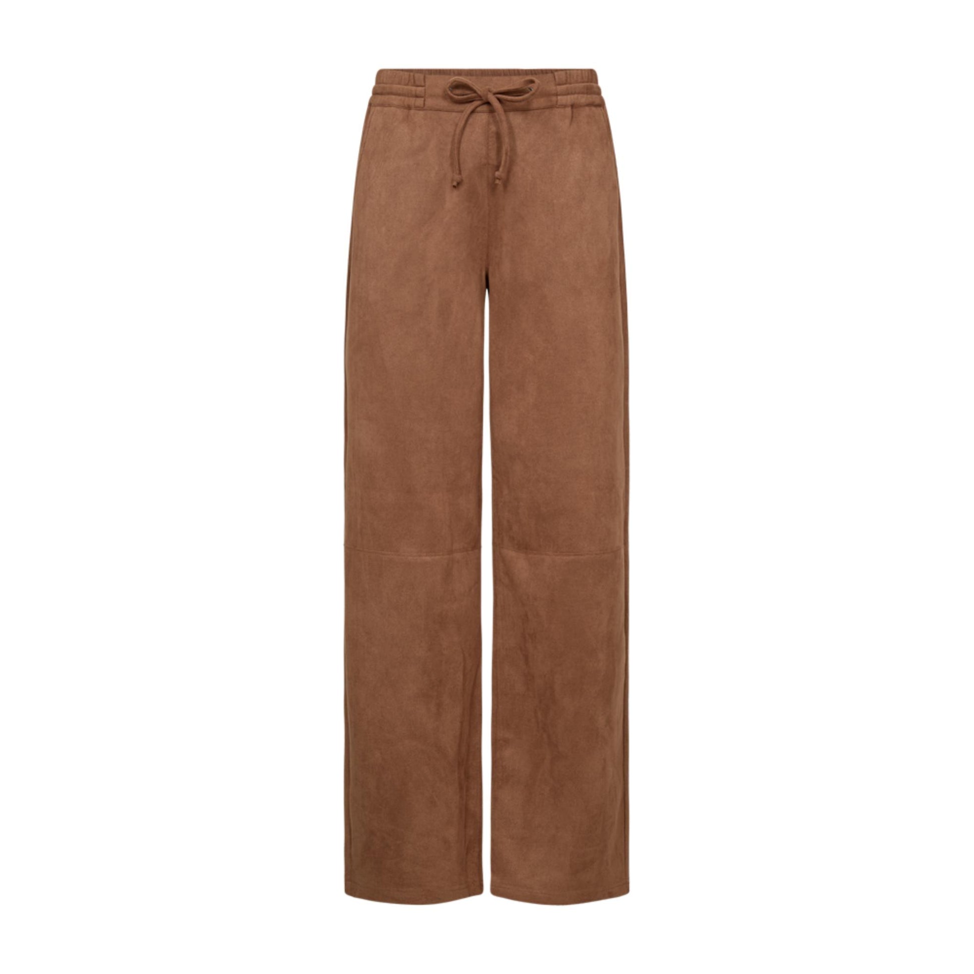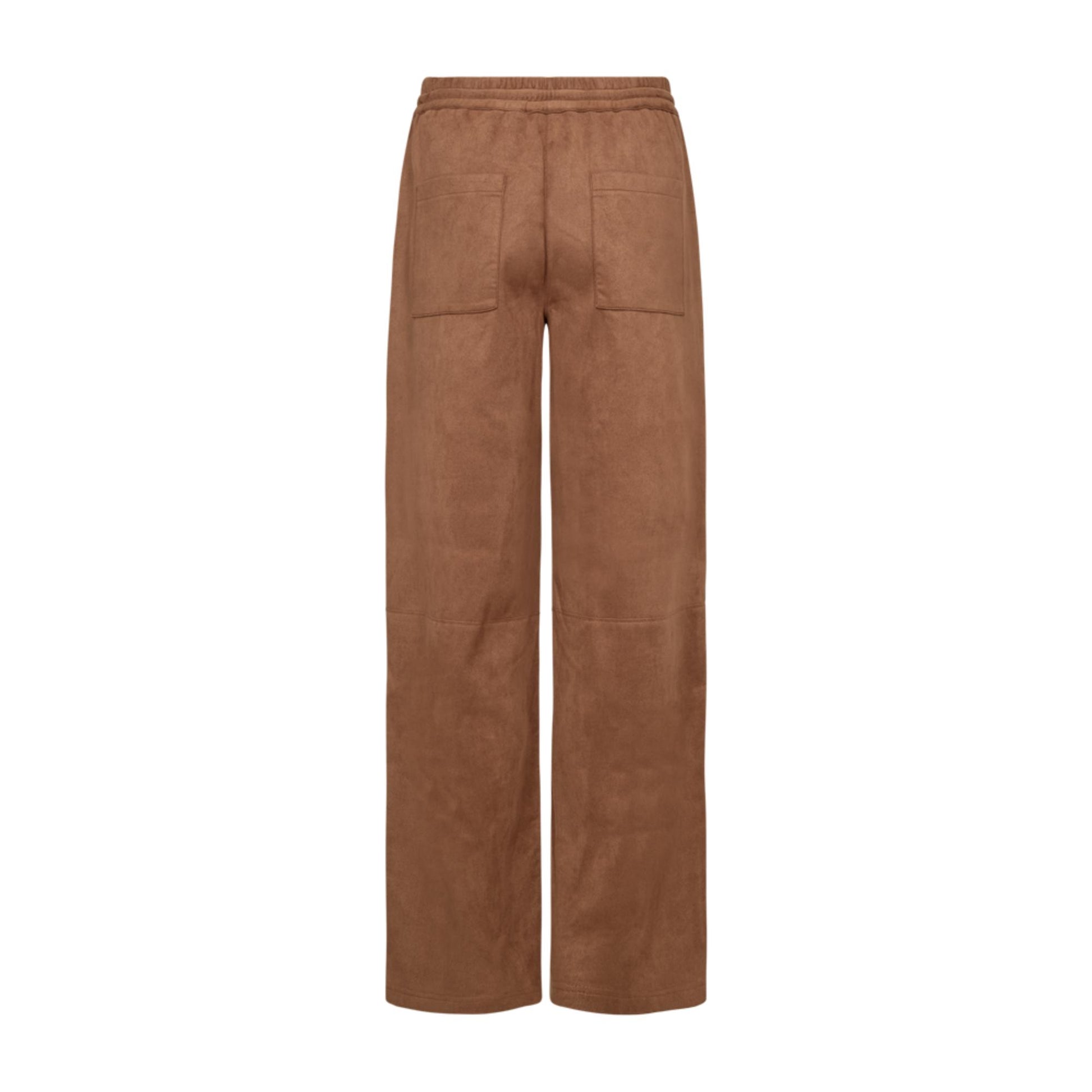 Lækker blød hellang buks i en vaskeskind, der ligner ruskind med kan vaskes i maskinen. Den har lige og lange ben. Det vil sige, at den er smallere i lårerne og brede ved fødderne. Buksen har elastik samt snøre i taljen.