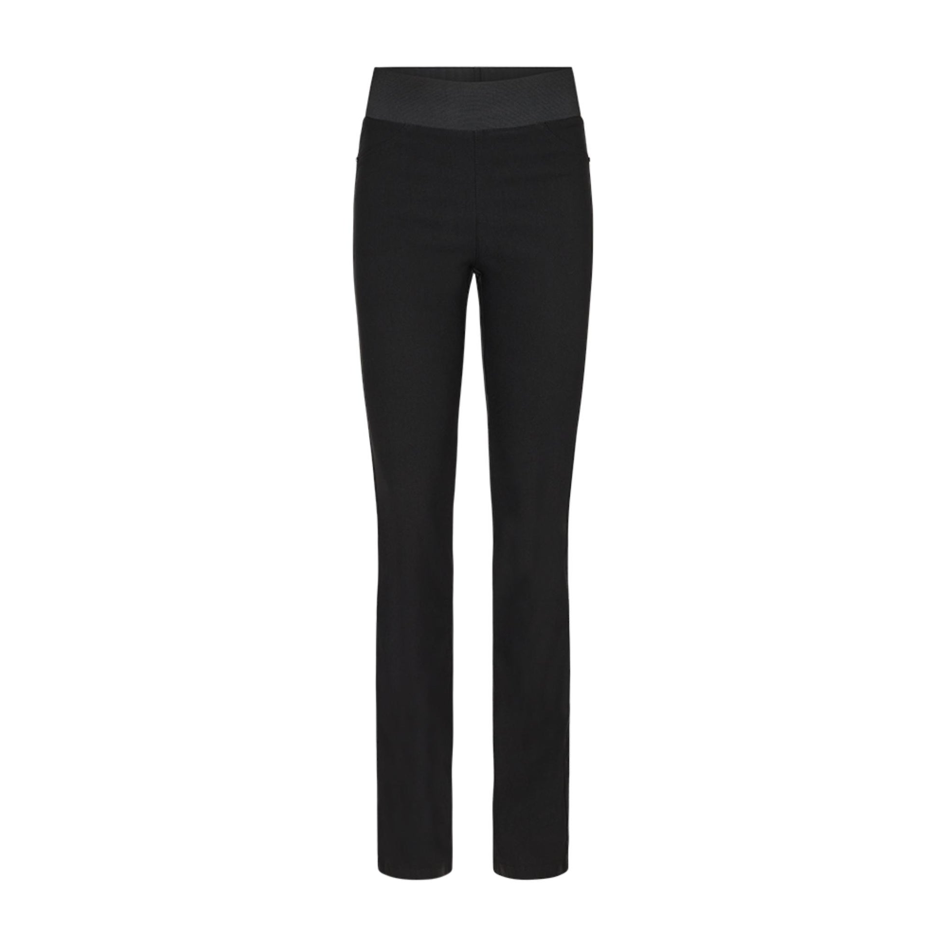 Smal lang leggingsbuks med strech samt bred elastik i livet. Forlommerne er syet sammen, Buksen har dog baglommer. Vi kalder dem for "Holde ind" bukser, da de sidder til og derfor holder ind på maven og numsen. Denne model er bredere ved fødderne og har derfor bootcut.