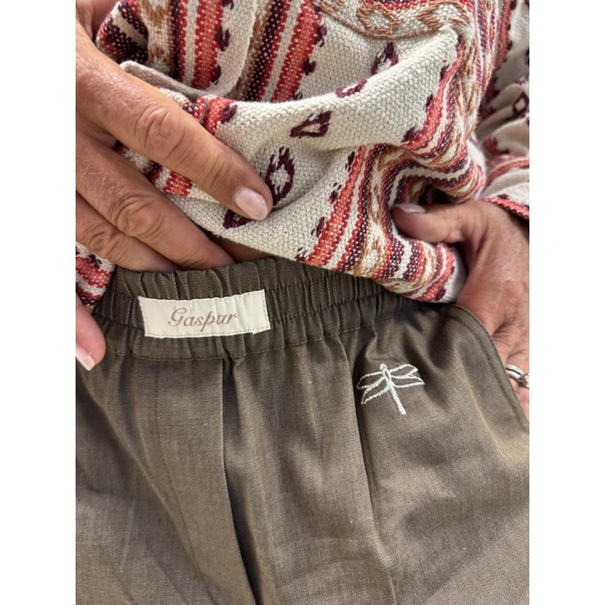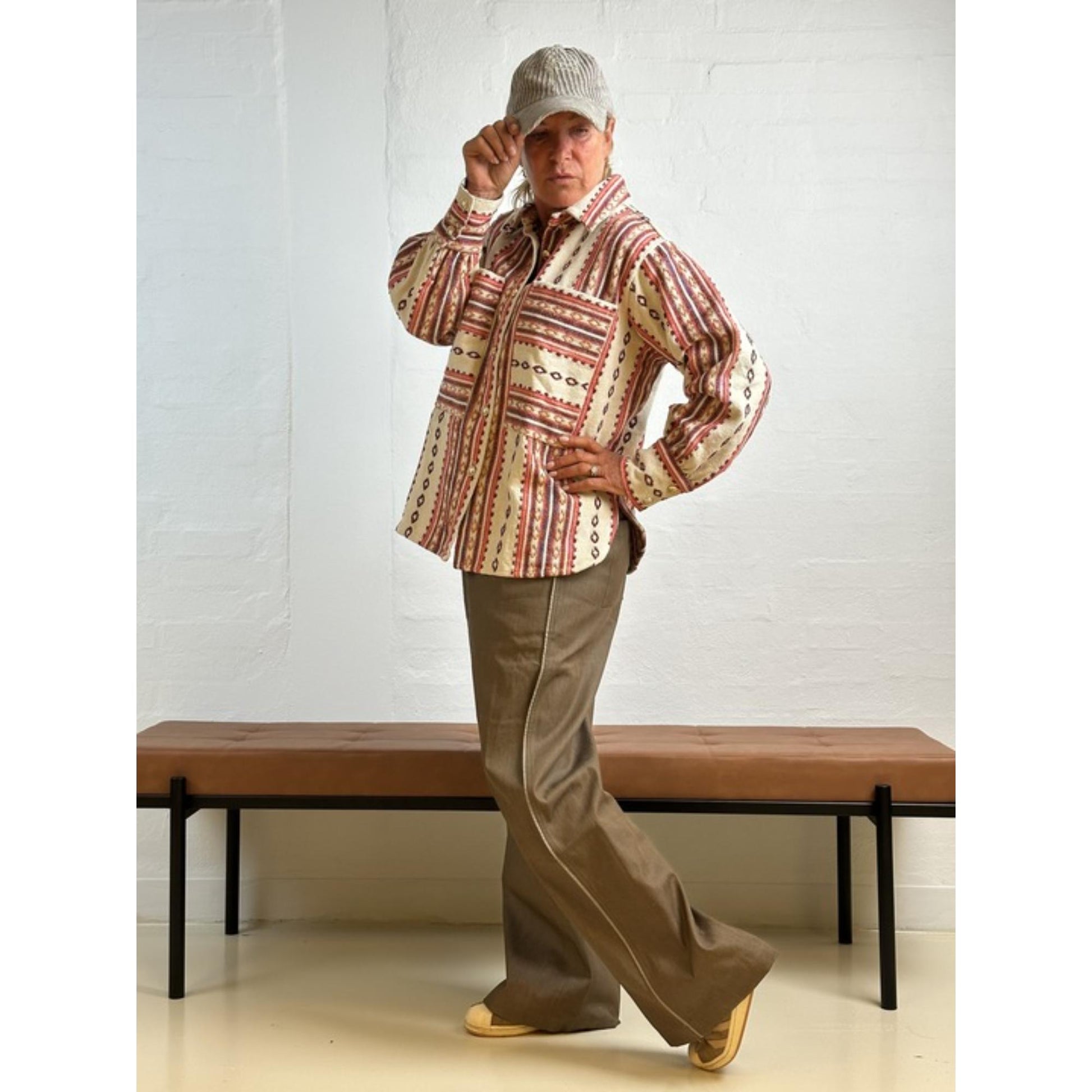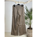 Lækker blød og tynd jeans med elastik i taljen samt med lige og brede ben. Den har skrålommer samt god plads. Buksen har en piping ned af benet. Den er tynd i kvaliteten og har god plads.