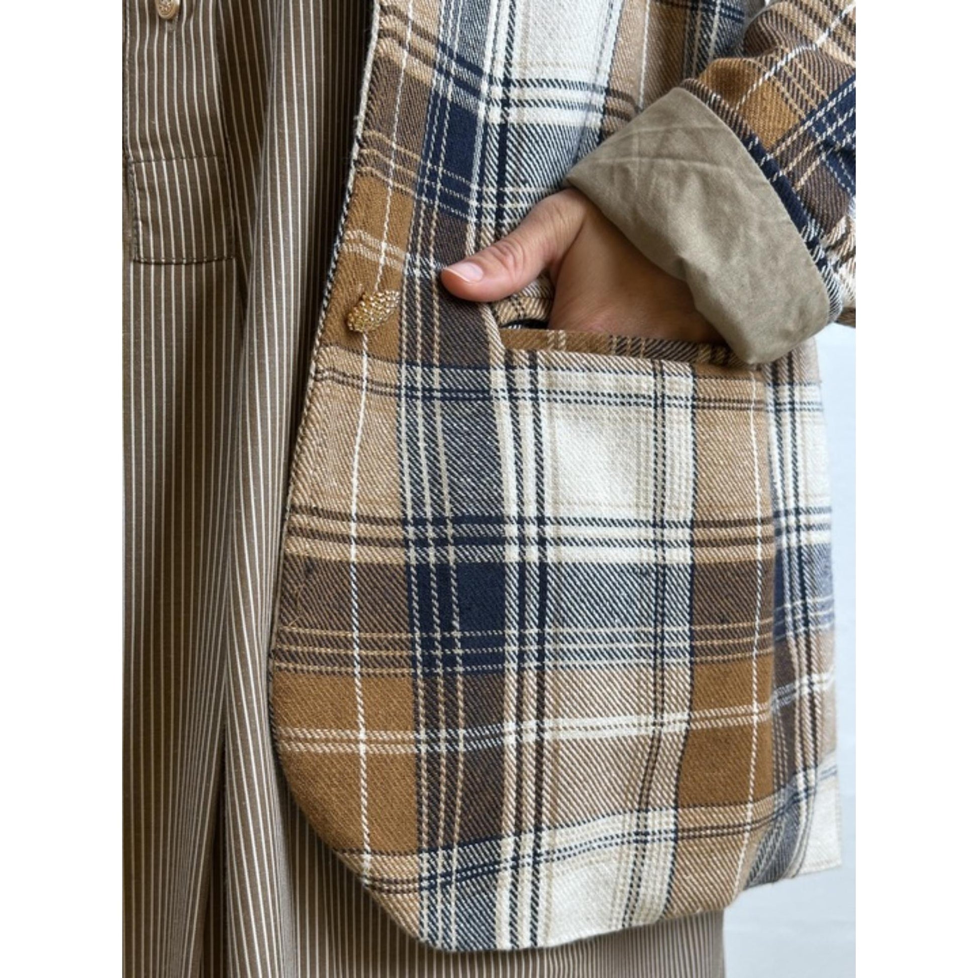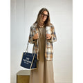 Ternet tynd og blød blazer med god plads. Den er nærmest som en stor skjorte, dog går den mere ned i v-hals samt har snittet som en blazer jakke.
