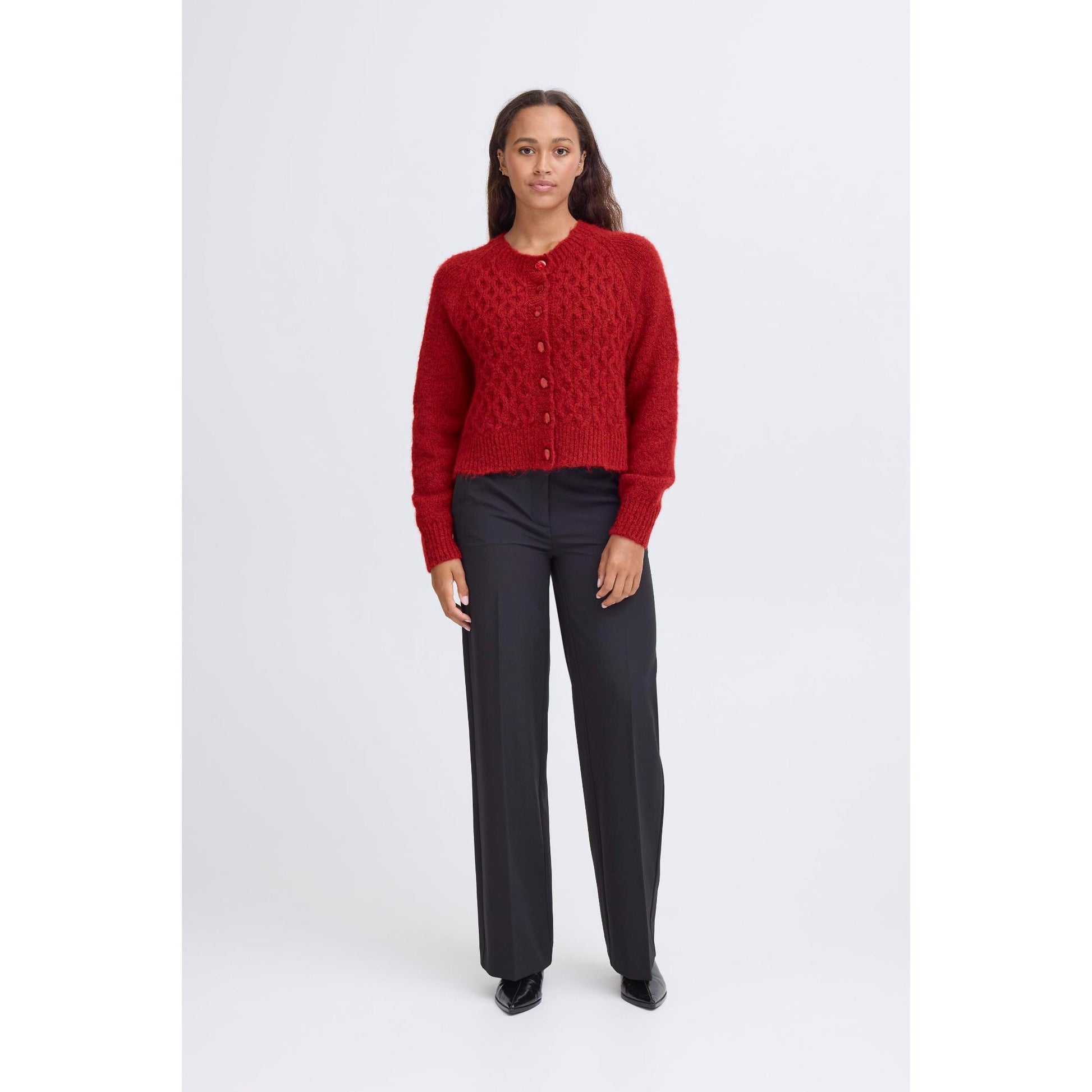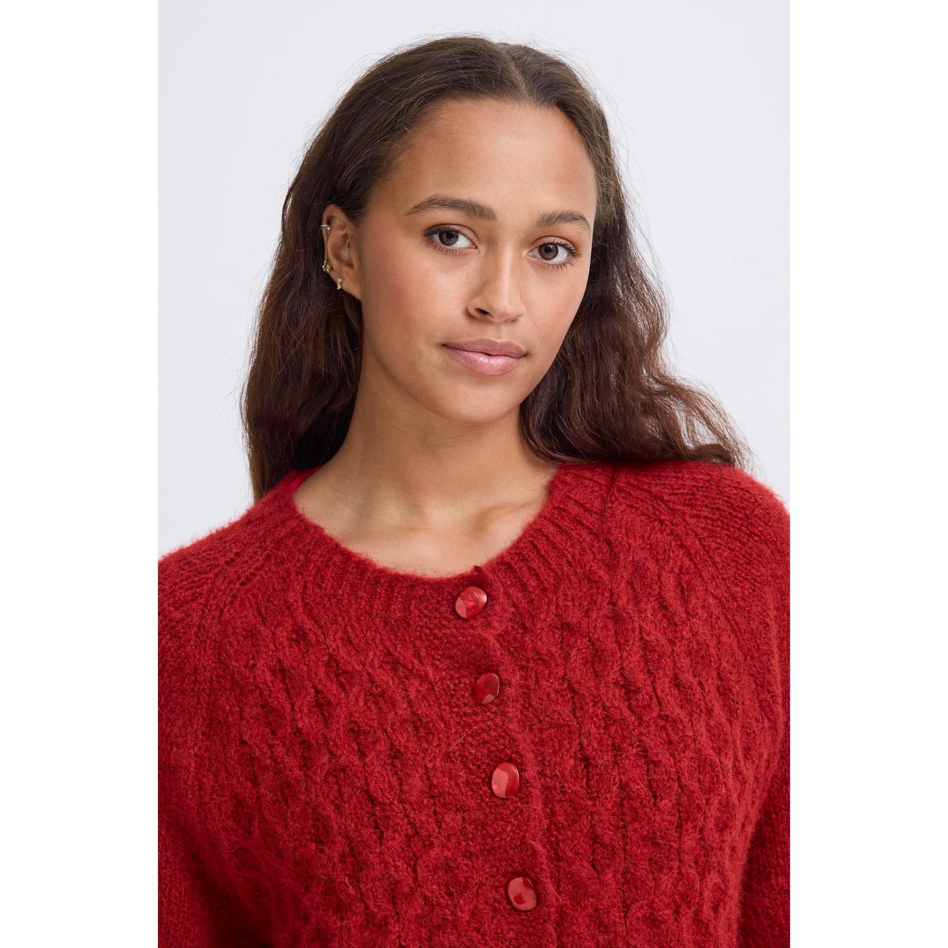 ICHI Belablue Strik Cardigan Red Dahlia