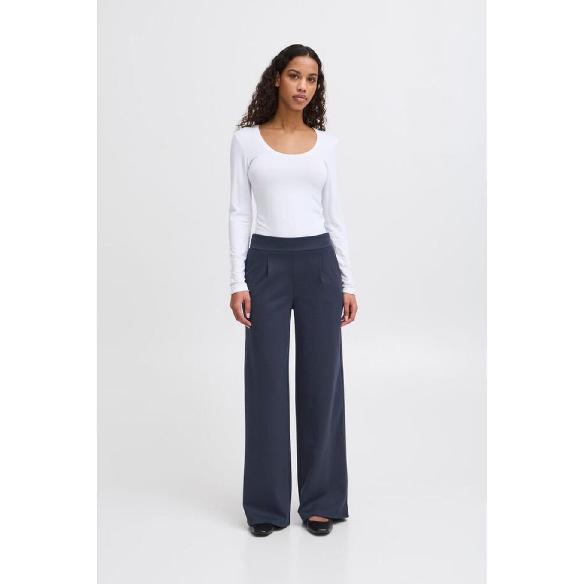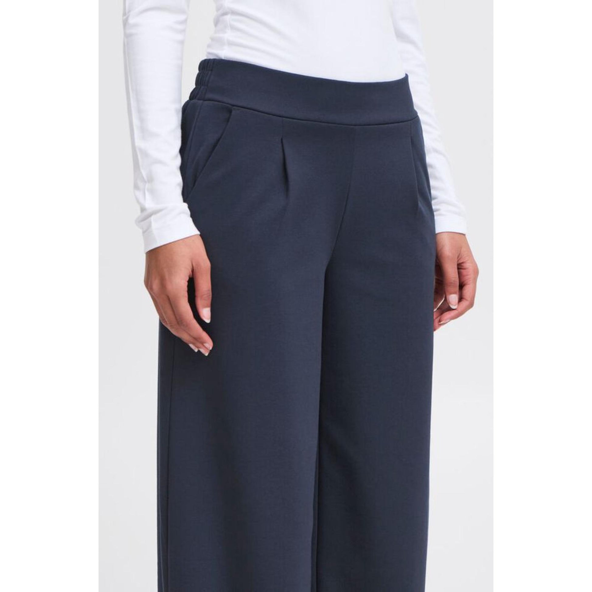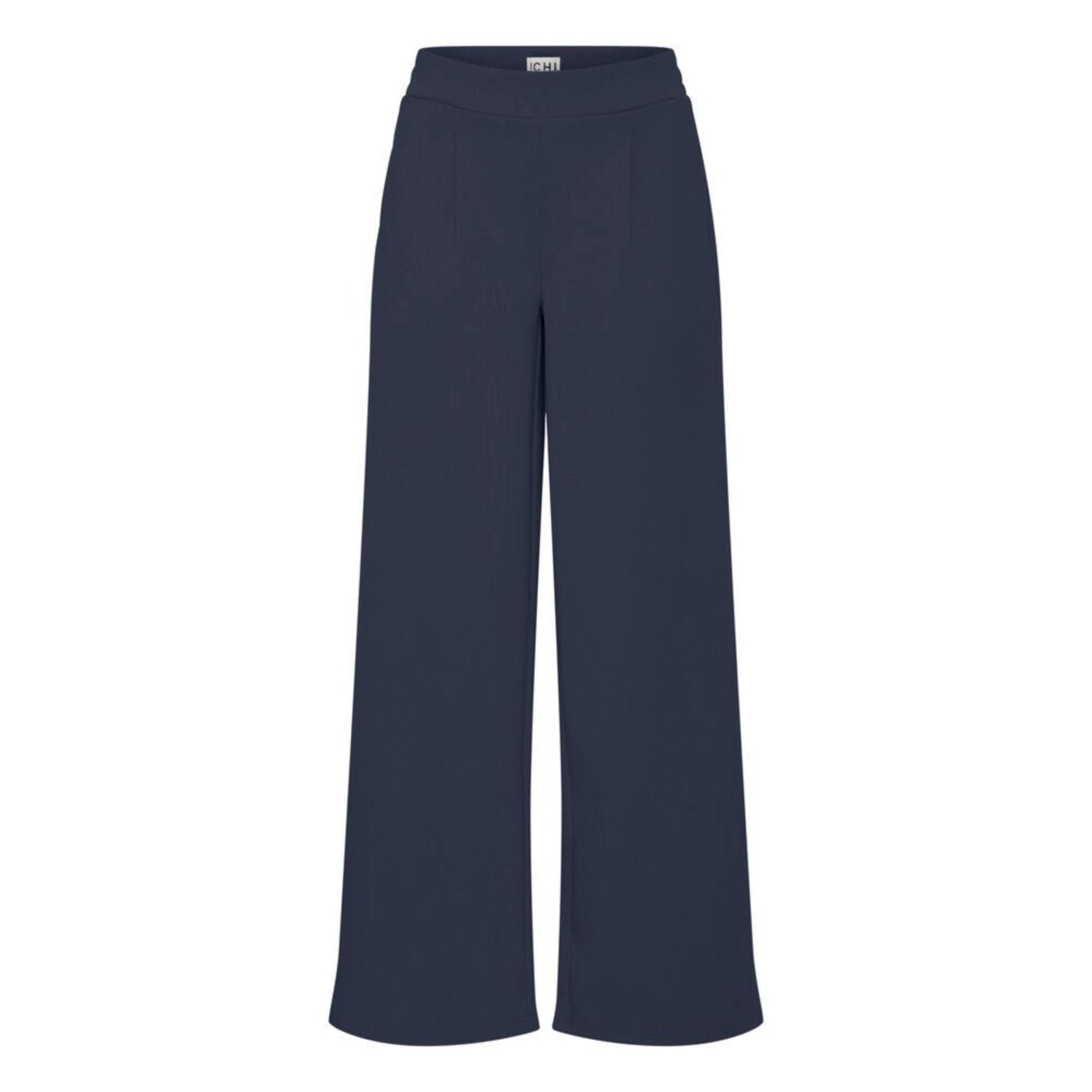 Lækker jerseybuks med vidde i benene. Den har elastik i taljen med et fast stof foran, så man ikke ser elastikket. Buksen har skrålommer. Den har et læg foran. Buksen er hellang og i en blød og kraftig jersey.