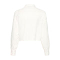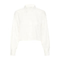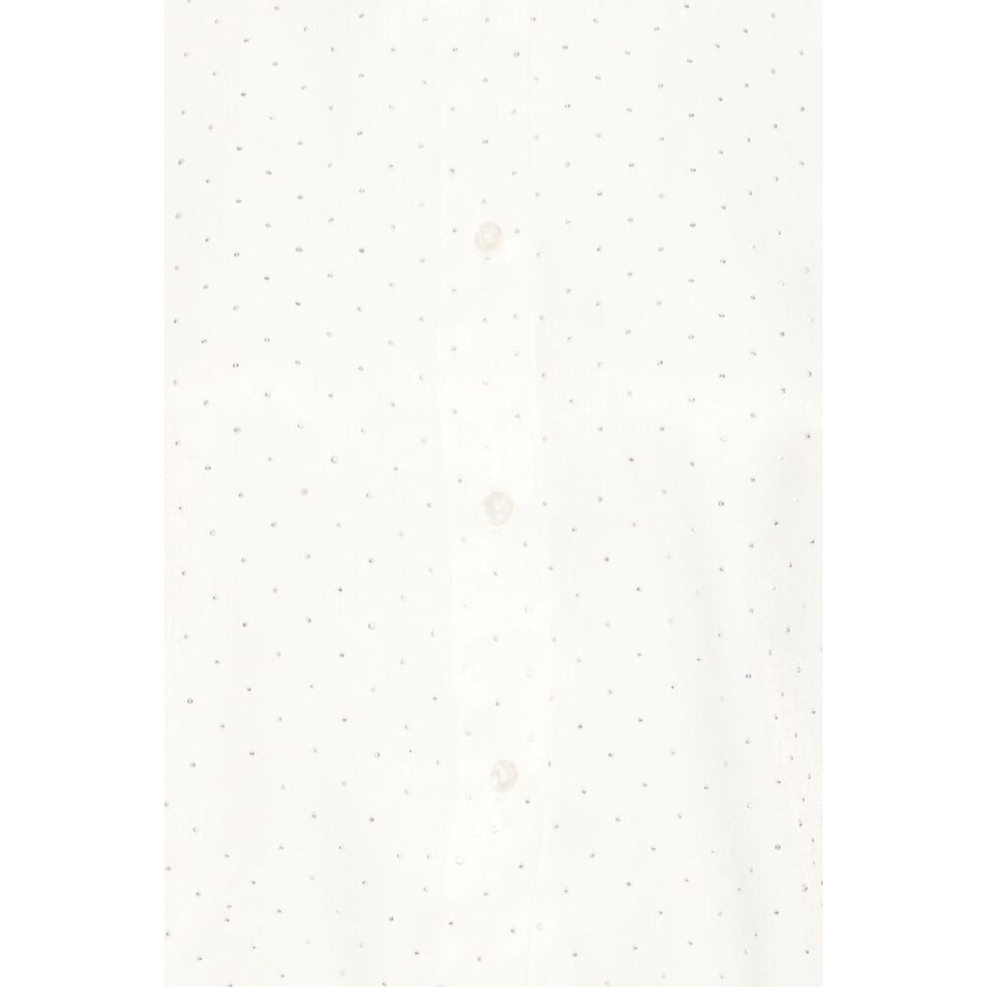 Kort enkel bluse i offwhite med "diamanter" i metervaren. Blusen er gennemknappet med krave ved halsen. Snittet er kort og lige. Den er i en tynd lækker kvalitet.