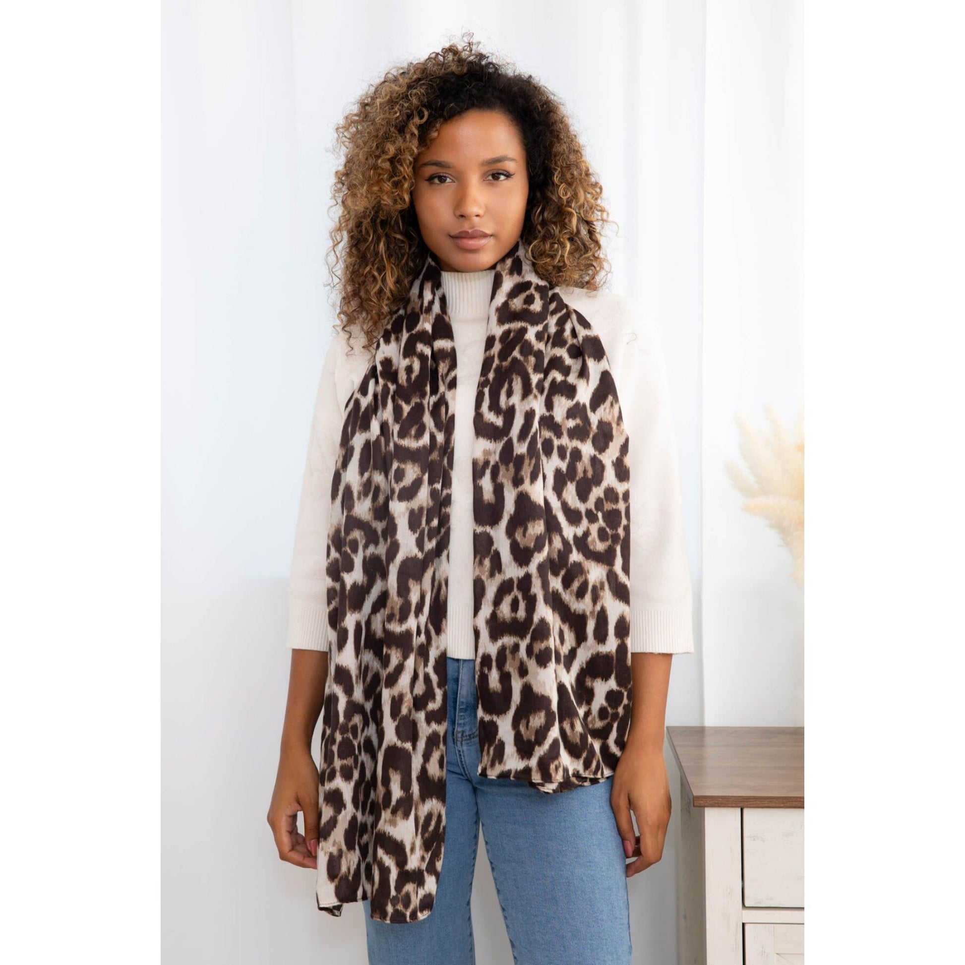 Lækkert leotørklæde med smukke farver. Det er halv bomuld og halv viscose, det vil sige ingen polyester i, så håret bliver ikke elektrisk af at bruge det.