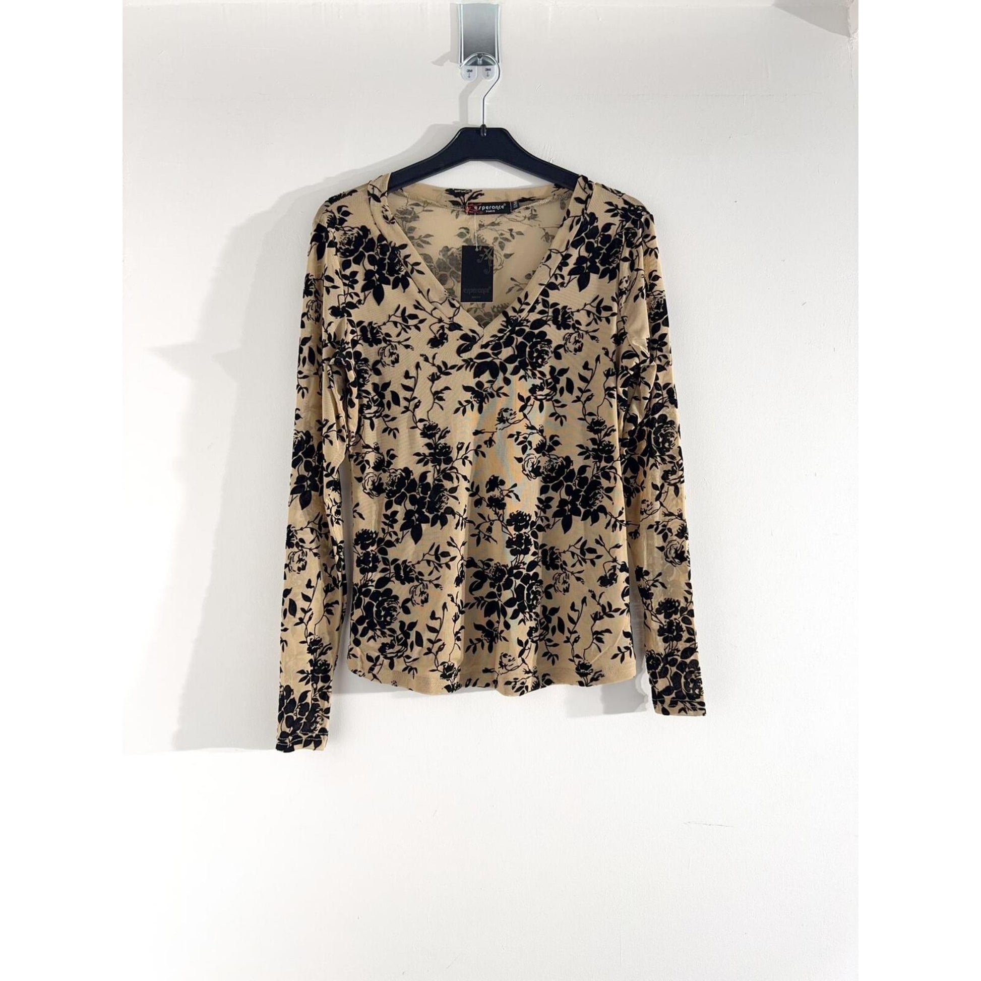 Italy Style Mesh Bluse Beige M. Sort Velour Print
