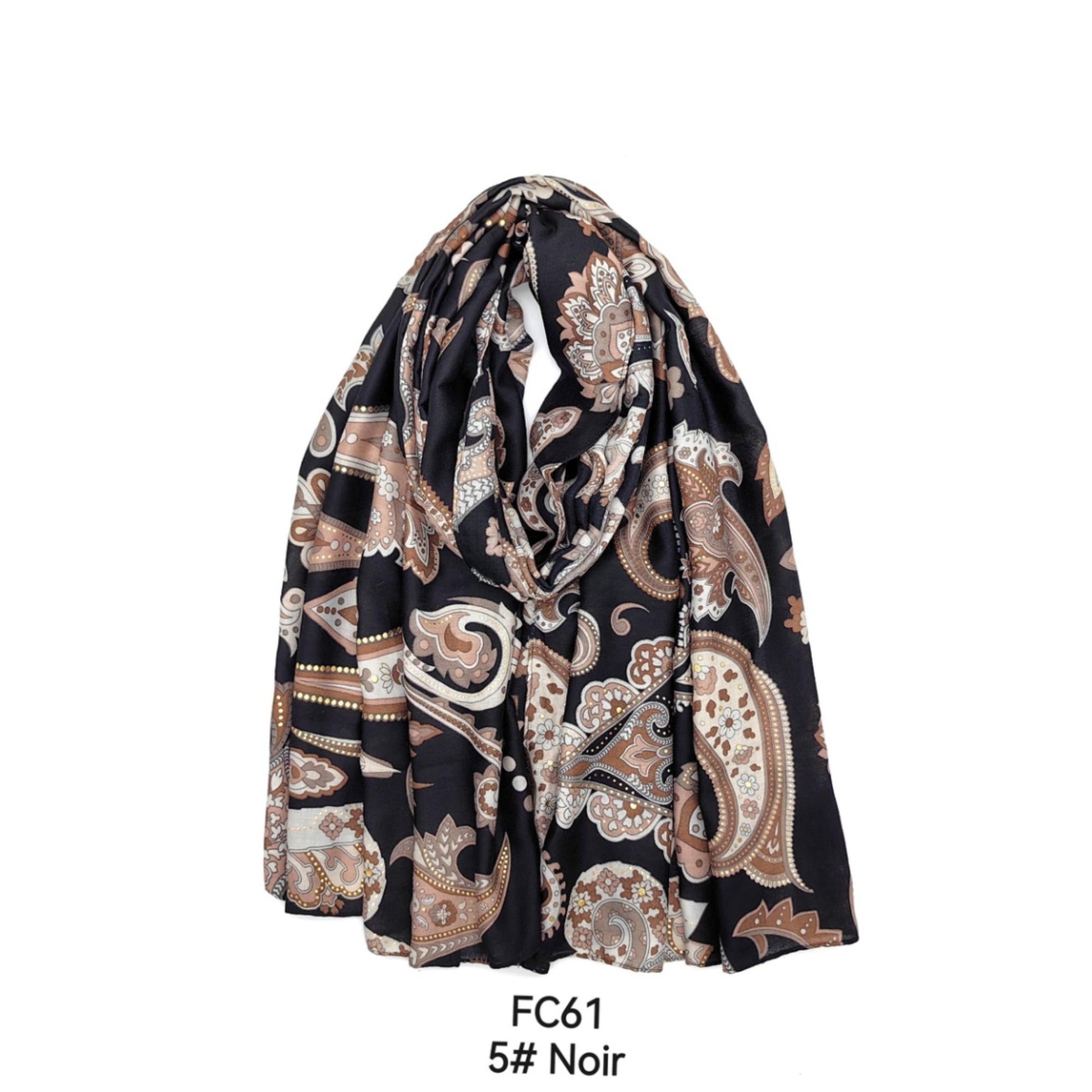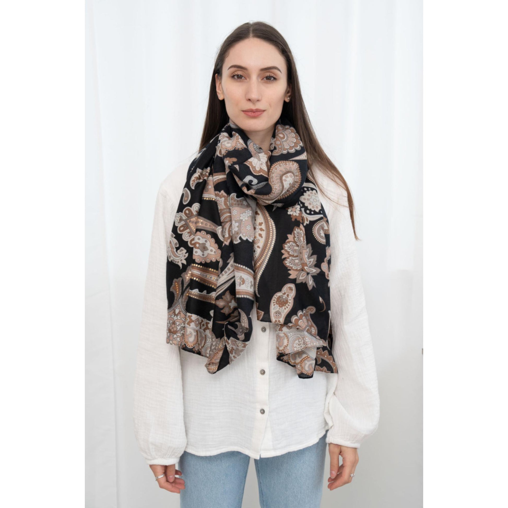 Italy Style Paisley Tørklæde Sort Brun Mix
