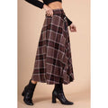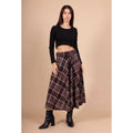 Lækker og blød ternet nederdel i en jersey kvalitet. Den sidder til foroven og går ud forneden. Nederdelen går til ca. skinnebenet. Den har en fast - dog jersey - kant foroven og har lommer i siderne.